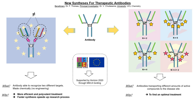 For all these reasons, developing chemical methods that allow to attach active compounds on the antibody with a perfect control is of huge importance. On a long term view, this should allow to develop optimised treatments (through optimised drug/antibody ratios) and then benefit patients.